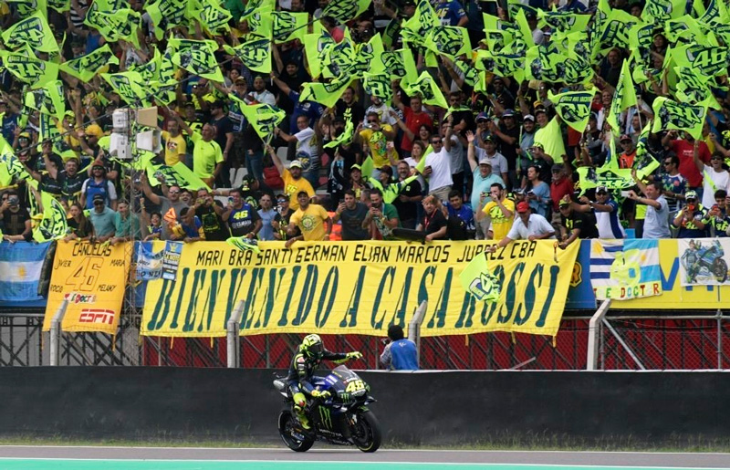 Por otro lado Jorge Lorenzo tuvo un terrible inicio pues llegó en la vigésima posición. Por lo visto el de Honda no le ha encontrado la cadencia a su moto. Márquez seguía con su buen ritmo en la carrera, y en la penúltima vuelta Rossi adelantó a Andrea Dovizioso y se quedó con la segunda posición, mientras que Viñales y Morbidelli se fueron al suelo. Márquez se mantuvo constante y obtuvo el triunfo de la carrera. Una gran cantidad de fans se reunieron en Ternas de Río Hondo para apoyar a Valentino Rossi, y al parecer el apoyo del público surtió efecto en el piloto italiano, ya que consiguió la segunda plaza.