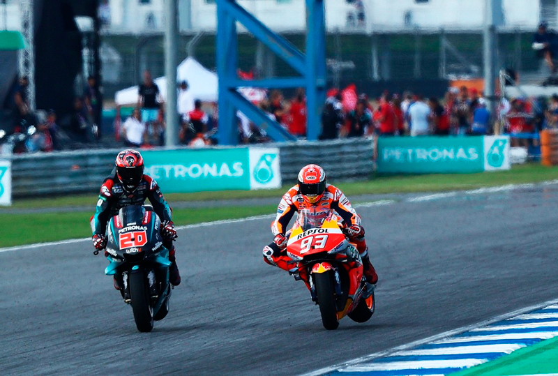 Cuatro vueltas antes de concluir la carrera, Márquez y Quartararo continuaban con su batalla, pues el piloto francés se resistía a darle la victoria al piloto español. Sin embargo Márquez ya estaba decidido a conseguir la primera posición.