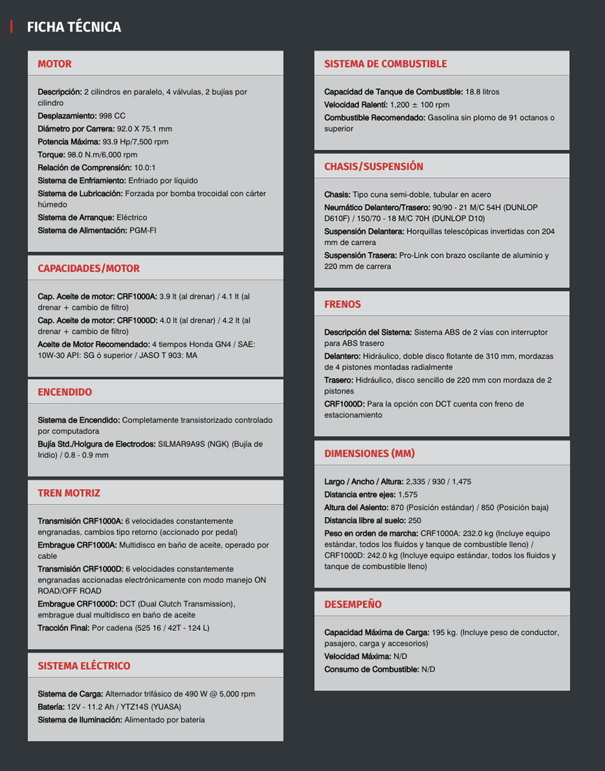 Se llama “CRF” como la línea de todoterreno de Honda, ello porque la CRF1100L Africa Twin fue diseñada es competitiva en el segmento Doble Propósito.