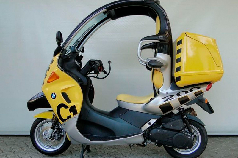 Una de las ideas que no acabaron de funcionar para BMW es el scooter C1. Un vehículo de dos ruedas con techo y cinturón de seguridad. El objetivo era alcanzar la manejabilidad de la moto y la seguridad y protección contra los elementos de un coche, al punto de estar homologado para su uso sin casco. Pero la combinación de un peso enorme, alto centro de gravedad y débil motor (125 y 200 cc) junto a su alto precio, hizo que la idea no funcionara… aunque todavía hoy continúa siendo un vehículo interesante. En 2009 BMW incluso presentó el prototipo de un C1-E movido por un motor eléctrico.