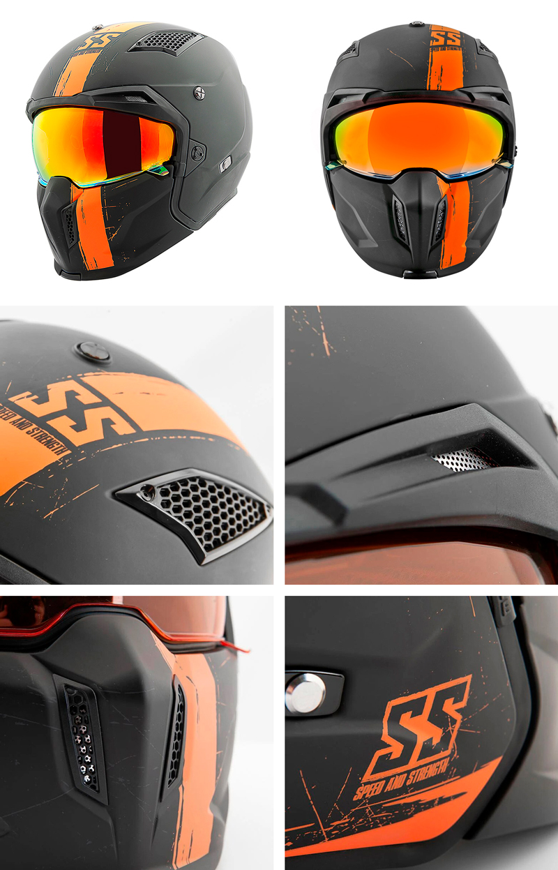 El casco de Speed and Strength® SS2400 Tough as Nails™ está fabricado en una aleación termoplástica avanzada A.T.P.A.™ que cumple o supera los estándares ECE 22-05 y viene con interiores hipoalergénicos Cool-Core® que absorben la humedad.