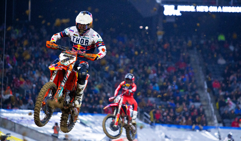 Gracias a ese contacto, Plessinger tuvo tiempo suficiente para dar una vuelta de la victoria más o menos en el recorrido final por el circuito. Saludó a la multitud mientras realizaba el triple de supercross una vez más e incluso levantó el puño mientras conducía junto a su mecánico Jade Dungey. La tormenta había sido capeada y se hizo historia cuando Aaron Plessinger cruzó la línea para ganar su primer evento principal de 450SX. Con Webb terminando segundo y Barcia completando el podio, mientras que Sexton solo pudo llegar al octavo lugar, Plessinger también logró hacerse con el liderato del campeonato.