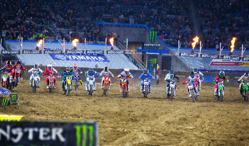Sin embargo, aunque la pista estaba mojada, era muy diferente a la de San Francisco. Muchos carriles de ritmo e incluso el triple de supercross todavía eran posibles para los mejores corredores y las carreras de calor demostraron que limitar los errores iba a ser la clave más importante. Tomac ganó su serie junto con Aaron Plessinger de Red Bull KTM , conocido por ser un buen piloto de barro. Todo estaba listo para que se disparara una gran bola curva a lo largo de la serie mientras los corredores se alineaban para el evento principal, y esta era una bola curva.