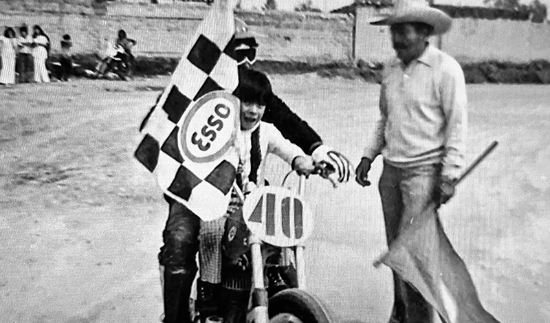 Su primera carrera fue en el Cerro de la Manzanilla en Puebla, donde quedó en Primer Lugar en la Categoría de 200cc Novatos, pero fue protestado porque pensaron que era experto, ya que sus hermanos habían corrido años atrás. Por eso decidió correr con los expertos en las siguientes carreras. Algunas de esas carreras fueron en el Estadio Azteca, acumulando mucha experiencia. También corrió en el Parque Delta de béisbol, en el Estadio Olímpico de Ciudad Universitaria. En la categoría de Motocross, corrió en el circuito de La Marquesa, el circuito de Colón en Toluca, en Puebla y en Querétaro, tanto en carreras a vueltas rápidas, así como de resistencia, tales como en las 6 Horas en La Laguna en Torreón y en la Magdalena Mixhuca.
