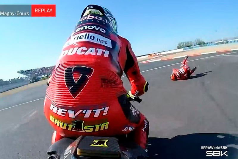“La Carrera 2 fue extraña, perdí la rueda trasera y no sé por qué. Antes ya había sentido algunas vibraciones, pero pensé que era algo normal. Nunca había tenido una caída así, ni tampoco había visto un neumático de esa manera. Al principio no sabía qué había pasado, pensé que se había salido la cadena. Luego me di cuenta de que el neumático estaba muy dañado. He tenido suerte porque ha sido en una curva rápida. En las últimas seis vueltas estaba pilotando con más calma. Vi que me estaba separando de Bautista y me sentía muy cómodo encima de mi R1. Era una buena carrera para mí, estaba disfrutando con la pelea. Fue una pelea limpia y creo que los aficionados disfrutaron mucho. ¡En especial con la curva de final de recta! He tenido mala suerte. No estoy enfadado con Pirelli. No sé por qué el neumático ha quedado así, estoy sorprendido, es algo extraño. Quedan muchas carreras y seguiré peleando”, confesó Toprak Razgatlioglu, que además había ganado la Superpole Race.