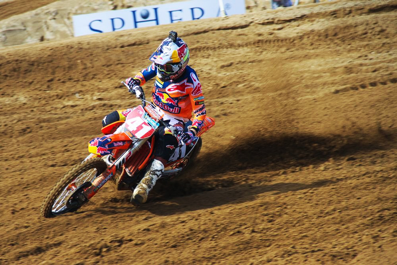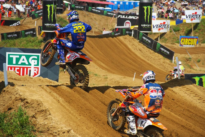 En la segunda manga, Herlings incluso pasó a su rival, y parecía que se estaba alejando, sólo para que Cairoli lo empujara y pasara por delante de él en el espacio de un par de vueltas, para el deleite de la multitud italiana partidista. Para Herlings, el esfuerzo fue demasiado, ya que se derrumbó poco después de la meta, perdiendo el podio. El otro piloto en el podio fue el de Husqvarna, Max Anstie, que anotó su primer top tres con 5-3 puntuaciones de moto. En condiciones abrasadoras, fue una exhibición realmente impresionante del inglés que parece estar mejorando en su temporada de MXGP novato.