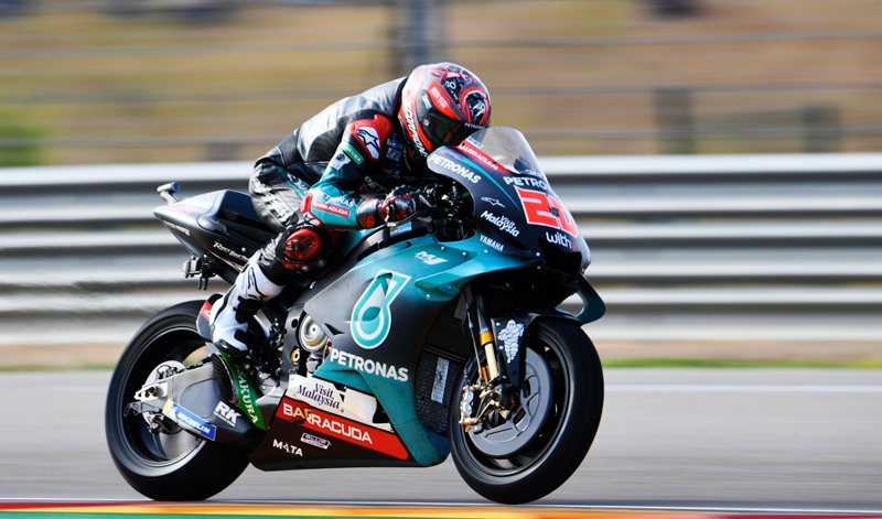 Maverick Viñales llegó en cuarto lugar y Fabio Quartararo completó la lista de los cinco mejores de Aragón.