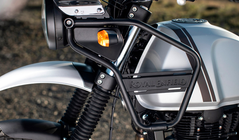 Destaca su “look” vintage; la seña de identidad de Royal Enfield inunda la Himalayan 450. Sin embargo, es también más deportiva, a lo que ayuda un guardabarros delantero con una línea inspirada en una moto de motocross o enduro. Además vendrá acompañada con iluminación Full LED.