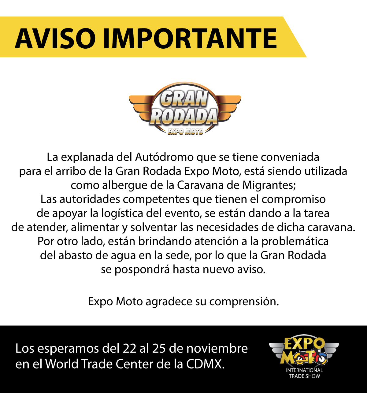 2016-05-28: Este correo electrónico y, en su caso, cualquier fichero anexo, contiene información exclusivamente dirigida a su destinatario. En caso de haber recibido este correo electrónico por error, se ruega notifíquese inmediatamente esta circunstancia a info@expomotonews.com Al mismo tiempo EXPO MOTO le recuerda que sus datos forman o formarán parte de un fichero registrado, propiedad de la EXPO MOTO. Usted tiene derecho de acceso, oposición, rectificación y cancelación a estos datos que deberá ejercer mediante escrito a la dirección anteriormente citada.Expo Moto es una marca registrada. Los logotipos de patrocinadores fueron proporcionados por la misma marca. Queda prohibido el uso de las imágenes difundidas en este correo. © 2013 EXPO MOTO Todos los derechos reservados.