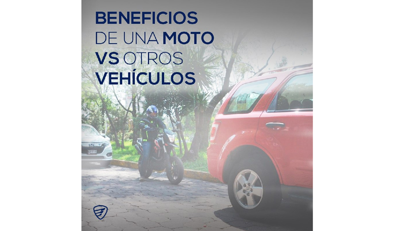 Tamaño compacto | Las s medios de mayores dimensiones no podrían utilizar; además, es más sencillo encontrar estacionamiento para una moto, incluso en muchos lugares hay zonas especiales para motos en las que el servicio es gratuito. Consumo de combustible | Este es uno de los grandes beneficios. Y es que todas las motocicletas resaltan entre todos los medios de transporte por su bajo consumo de combustible, ya que podrás llenar el tanque de tu moto con mucho menos de la mitad del dinero que gastas para llenar el tanque de un auto; además, la moto brinda un alto rendimiento, con lo que podrás avanzar por mucho más tiempo. Servicios de mantenimiento | Los costos de mantenimiento de una moto son mucho más bajos en comparación a los que se realizan a otros medios de transporte, ya que ocupan menos insumos. Sus componentes o piezas son más económicas, por lo que en el mantenimiento de tu moto seguirás ahorrando.