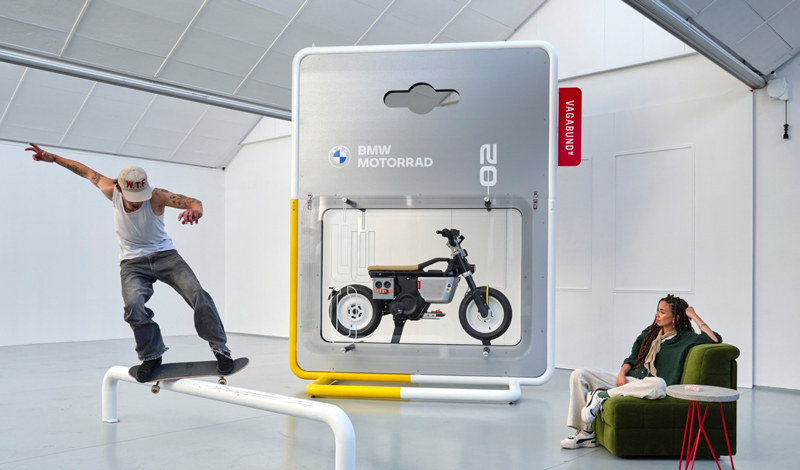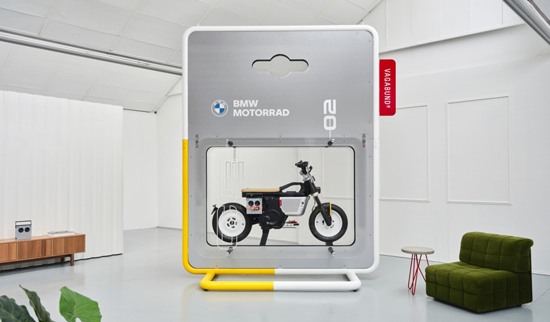 BMW Motorrad y Vagabund crean otro punto de atracción absoluto con el embalaje de 3.6 metros de altura de la moto personalizada.