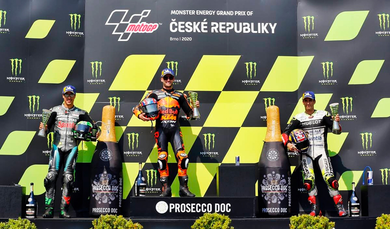 La lucha continuaba por el primer puesto y nadie pudo quitarle la primera posición a Brad Binder con su KTM. Con una buena carrera Franco Morbidelli terminó en segundo lugar, y a pesar de aceptar su sanción y cumplirla, Johann Zarco alcanzó un tercer lugar.