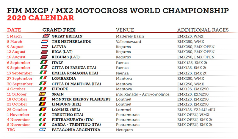 El 6 de septiembre los pilotos serían parte del MXGP de Turquía, pero esta cita fue aplazada hasta el 2021, por lo que los pilotos tendrán que correr tres carreras en Italia.