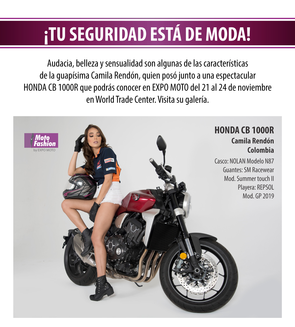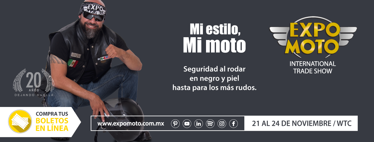 2016-05-28: Este correo electrónico y, en su caso, cualquier fichero anexo, contiene información exclusivamente dirigida a su destinatario. En caso de haber recibido este correo electrónico por error, se ruega notifíquese inmediatamente esta circunstancia a info@expomotonews.com Al mismo tiempo EXPO MOTO le recuerda que sus datos forman o formarán parte de un fichero registrado, propiedad de la EXPO MOTO. Usted tiene derecho de acceso, oposición, rectificación y cancelación a estos datos que deberá ejercer mediante escrito a la dirección anteriormente citada.Expo Moto es una marca registrada. Los logotipos de patrocinadores fueron proporcionados por la misma marca. Queda prohibido el uso de las imágenes difundidas en este correo. © 2013 EXPO MOTO Todos los derechos reservados.