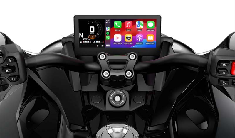 Una de las grandes novedades del modelo 2025 es la incorporación de una pantalla táctil panorámica de 10,25 pulgadas, equipada con Apple CarPlay y BRP Connect, permitiendo controlar llamadas, música, navegación GPS y otras funciones desde el manillar. Este sistema mejora drásticamente la experiencia multimedia a bordo y convierte al F3 en uno de los modelos más conectados del segmento. Además, los modelos F3-T y F3 Limited incluyen sistemas de audio integrados, conectividad USB, control de crucero, puños calefactables, iluminación LED completa y encendido sin llave. La edición Limited Special Series agrega cámara de reversa y acabados exclusivos, pensados para usuarios que valoran la personalización y el lujo.