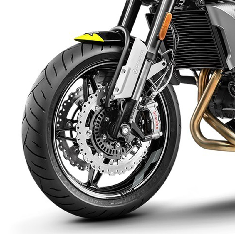 - Neumático delantero: 120/70 ZR17, MAXXIS MA-ST2