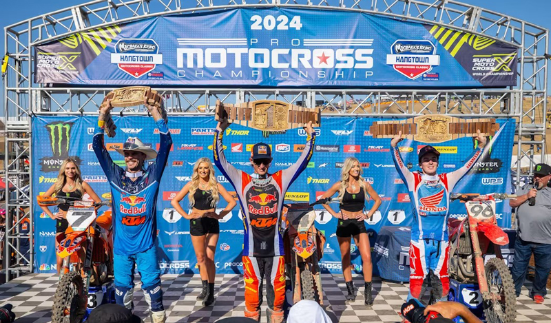 La segunda ronda del Campeonato Pro Motocross 2024, sancionada por AMA Pro Racing, viajó al norte de California, a la sombra de la capital del estado de Sacramento, para la histórica edición número 55 del Michael’s Reno Powersports Hangtown Motocross Classic, presentado por Yamaha Power Assist Bicycles. Abundante sol y temperaturas cercanas a los 90 grados recibieron a los corredores y fanáticos en Prairie City SVRA en lo que se convirtió en un clásico instantáneo del campeonato de 53 años.