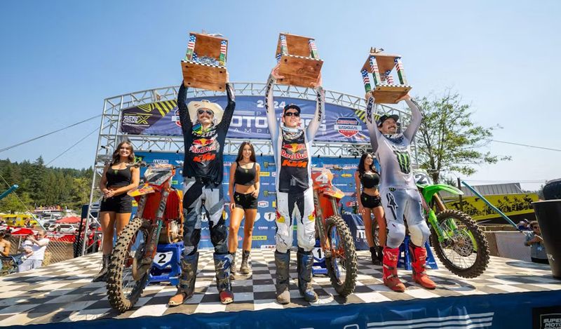 Anderson mantuvo a Sexton en su lugar durante varias vueltas, pero el piloto de KTM se alejó al final para culminar otra tarde perfecta por 13 segundos sobre Anderson, quien obtuvo su mejor resultado de moto de la temporada. Plessinger terminó sólidamente en tercer lugar.