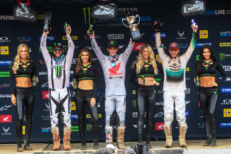 Al final de la carrera, Lawrence había construido una ventaja cómoda, mientras que Shimoda, Smith y Deegan corrían lo suficientemente cerca como para que cada una de sus posiciones estuviera en peligro. Los pilotos han dado la vuelta a las últimas vueltas sin cometer errores importantes. Lawrence se llevó a casa la victoria en la carrera y con ella su primer título Monster Energy AMA Supercross. Shimoda obtuvo su primer podio de la temporada después de perderse la mayor parte debido a una lesión, y Smith ocupó el último lugar en el podio.