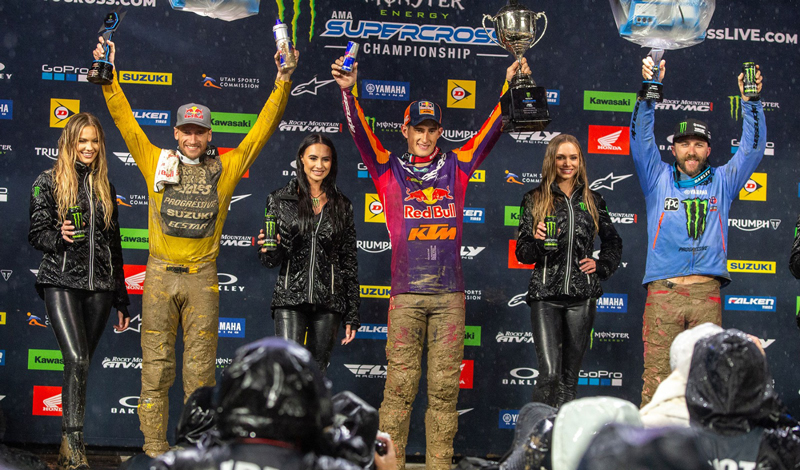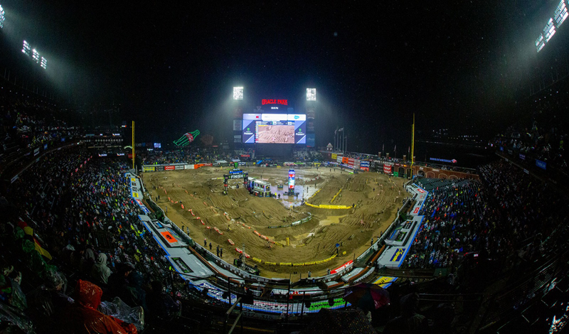 Chase Sexton hizo un tiro perfecto para tomar el control del evento principal de 450SX. El caos se desató detrás de él, pero el piloto de Red Bull KTM lideró cada vuelta de la carrera en el camino hacia su primera victoria de la serie. Sexton mantuvo el primer puesto y se defendió de los desafíos de Tomac y de los lappers al final de la carrera. Toma el liderato de la serie con la placa roja.