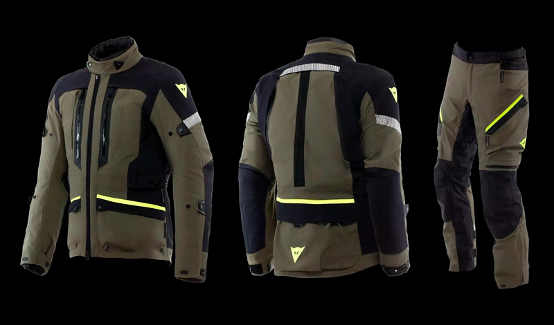 • Pantalón Dainese Mangen Absøluteshell Pro: hecho con el mismo tejido y membrana que la chaqueta, incluye protectores ajustables Pro-Armor en las rodillas y protectores Pro-Shape en las caderas, ofreciendo gran confort térmico.