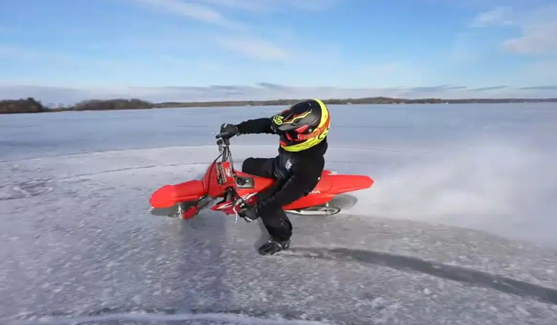Aprovechando la potencia del motor y la afilada tracción de las hojas, logra desplazarse sobre superficies heladas, sorprendiendo a todos con su rendimiento sobre el hielo de un lago. Sin embargo, el equipo no se detiene ahí, llevando su experimento a terrenos más desafiantes, donde demuestran la funcionalidad de este peculiar diseño.