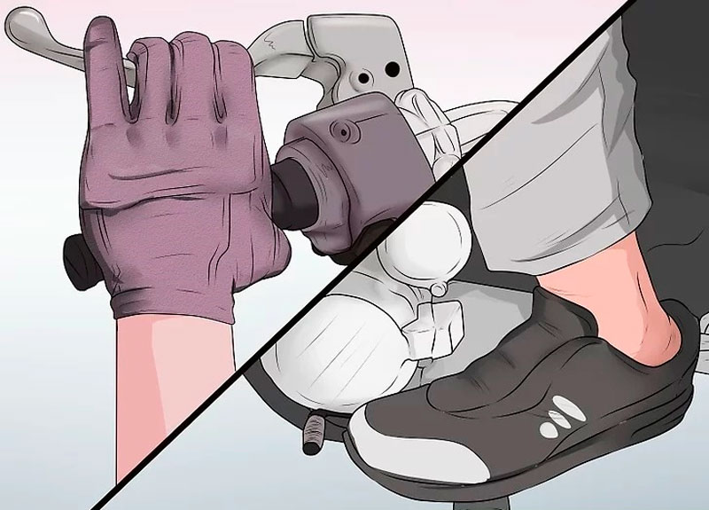 Finalmente, ahora que has practicado encender y hacer cambios, tienes que saber cómo bajar la velocidad y detenerte. Recuerda que la palanca en el manubrio derecho opera el freno delantero, mientras que el freno cerca de tu pie derecho opera el freno trasero. Como regla general, debes empezar a frenar con el freno delantero y emplear el freno trasero después para ayudarte a bajar la velocidad y detenerte.