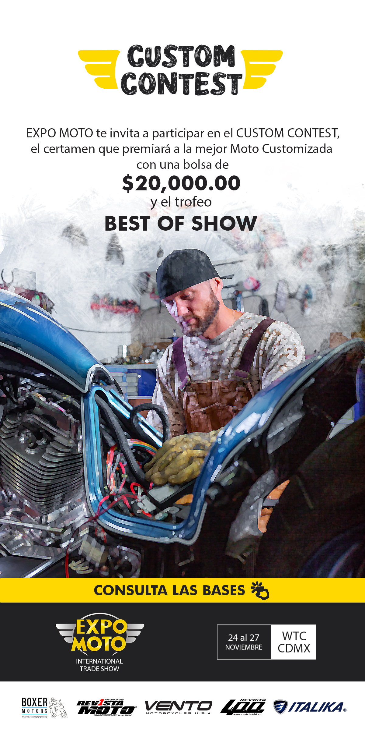 2016-05-28: Este correo electrónico y, en su caso, cualquier fichero anexo, contiene información exclusivamente dirigida a su destinatario. En caso de haber recibido este correo electrónico por error, se ruega notifíquese inmediatamente esta circunstancia a info@motociclo.com.mx Al mismo tiempo EXPO MOTO le recuerda que sus datos forman o formarán parte de un fichero registrado, propiedad de la EXPO MOTO. Usted tiene derecho de acceso, oposición, rectificación y cancelación a estos datos que deberá ejercer mediante escrito a la dirección anteriormente citada.Expo Moto es una marca registrada. Los logotipos de patrocinadores fueron proporcionados por la misma marca. Queda prohibido el uso de las imágenes difundidas en este correo. © 2013 EXPO MOTO Todos los derechos reservados.