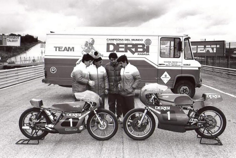 Cabe mencionar que la mancuerna Derbi-Nieto comenzó cuando Ángel tenía apenas 16 años, y la marca lo empleó en el departamento de competencias, ya que contaba con modelos de 50 cc, clase en la que Ángel, por su corta edad, se le permitía conducir. En 1964 compitió en la categoría 50 cc, y aunque obtuvo el 10° lugar, fue el inicio de una larga sociedad entre ambas leyendas. Ángel corrió con los vehículos de la marca Derbi de manera consecutiva de 1964 hasta 1972. El primer mundial lo obtuvieron en 1969 en la misma categoría con la que habían iniciado. Esa victoria convertiría a Ángel Nieto en el primer campeón mundial español en la historia del motociclismo. El año siguiente, en 1970, obtuvieron la victoria, y también ese mismo año se adjudicaron el segundo lugar en la categoría 125 cc. Acumularon podios en 1971 de 125 cc, y al año siguiente ganaron ambas clases (50 y 125cc). Tras haber cambiado a Morbidelli en 1973 y haber obtenido el 7° lugar, Nieto regresó con Derbi en 1975 en la clase 125 cc, para subir al podio en el tercer lugar. En la década de los 80 la marca siguió cosechando éxitos en la clase 80cc con los pilotos españoles Jorge Martínez y Manuel Herreros en 1986, 1987, 1988 y 1989, respectivamente.