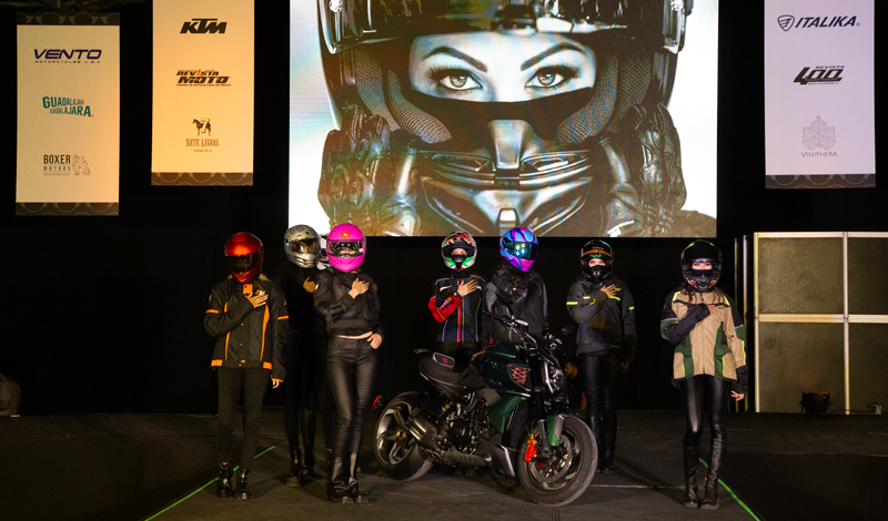 Fueron tres las pasarelas que engalanaron el cóctel de inauguración la noche del jueves 22 de mayo. Comenzando con la pasarela de seguridad, cascos, chamarras, guantes y botas de nuestras marcas expositoras: Turer, Machine Garage, Two wheels, Seventy Degrees y MT Helmets.