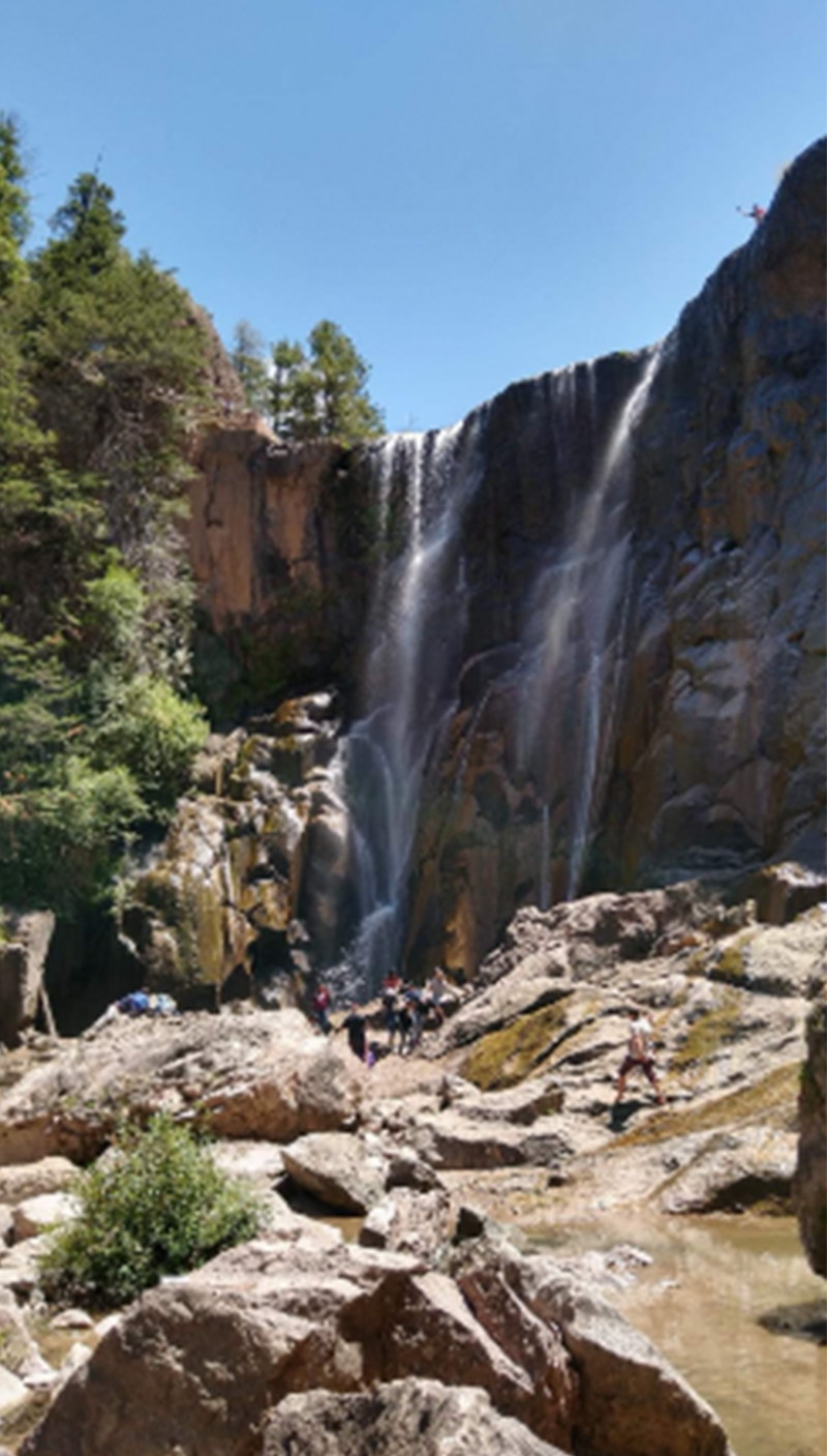 La cascada está rodeada de un bosque de pino encino que podrás llegar a pie o en bicicleta a través del sendero.