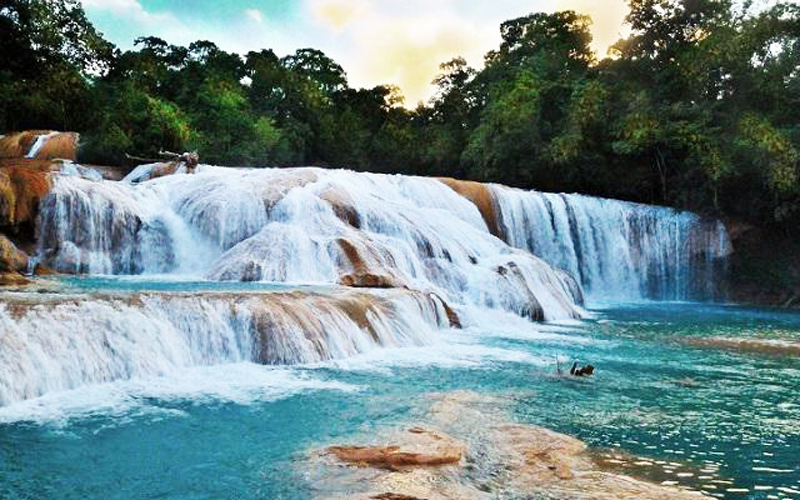 Si te gusta la naturaleza, en Palenque existen dos cascadas, ambas con caídas espectaculares, la primera, Misol Ha, se encuentra a sólo 20 kms. y tiene una caída de 30 metros de altura. El lugar cuenta con restaurantes y cabañas rústicas. Rodando 64 kms. más encontrarás las Cascadas de Agua Azul, que se forman por los afluentes de los ríos Otulún, Shumuljá y Tulijá, el cual forman cañones no muy profundos con acantilados verticales. El hermoso color blanquiazul de sus aguas se da por las sales de carbonatos que llevan disueltas. Fue declarada en 1980 Zona de Protección Forestal y Refugio de Fauna Silvestre y más tarde Reserva Especial de la Biosfera, debido a que en su entorno habitan una gran variedad de especies naturales y animales en peligro de extinción.