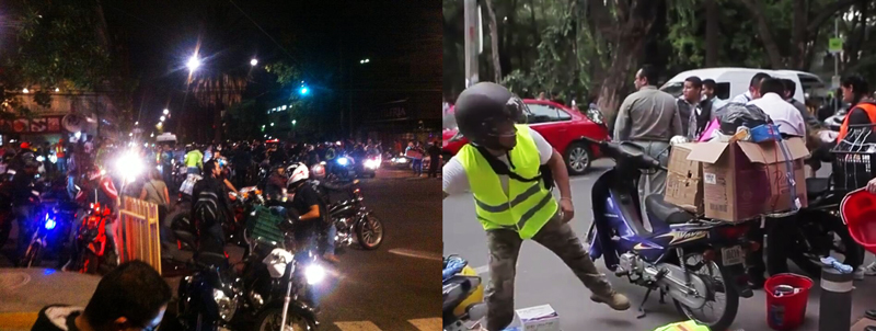 Se cerraron muchas calles de la ciudad, por lo que los habitantes de la metrópoli no pudieron llegar a sus hogares, ya que el transporte público se colapsó. Los motociclistas siempre se han solidarizado y han demostrado que poseen un corazón altruista, y esta ocasión no fue la excepción. Miles de motociclistas se unieron para salir a las calles a brindar ayuda y se distribuyeron diferentes tareas: unos transportaban personas a sus hogares, otros llevaban comida y medicamentos de los centros de acopio a los albergues o a las zonas afectadas, otros transportaban a los paramédicos que daban asistencia a personas heridas, y el resto vigilaba la ciudad para que no se cometieran actos de delincuencia.
