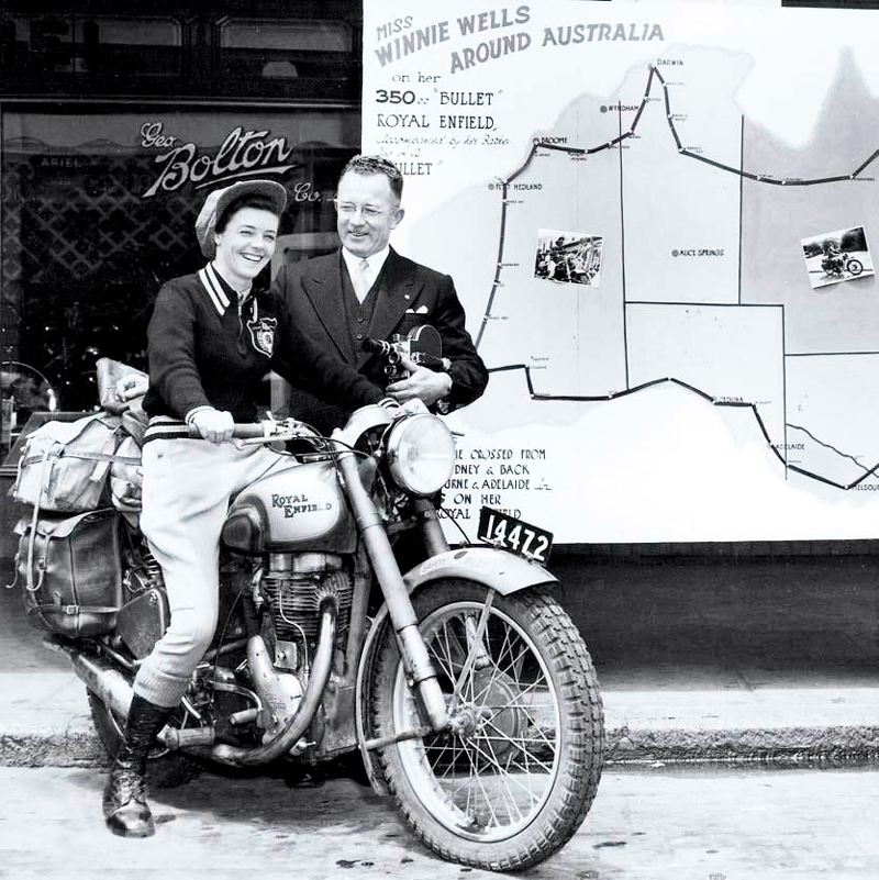 Nació en 1928 en Australia Occidental y desde muy joven demostró a sus allegados que no era una chica ordinaria. La dominaba su espíritu curioso y una pasión incontrolable por conocer el mundo. Con tan solo 22 años de edad ya era famosa en su ciudad, en especial en el medio del motociclismo, por ser aficionada de las competencias y de la velocidad de las dos ruedas. No obstante, enfrentó bastantes críticas y acerbos comentarios por parte de sus conocidos masculinos; recordemos que en aquella época la mujer era un icono de debilidad y se consideraba que muchos deportes no eran aptos para ellas, en especial en los que había riesgos. El motociclismo, sin duda, era un mundo exclusivo de los hombres y muchos demostraron desdén hacia una chica de 22 años que intentaba unirse a los clubs. Lo que ellos no sabían era que Winnie poseía un carácter firme, y gracias a él aprendió a cabalgar la máquina de acero por su cuenta. Se hizo de una Royal Enfield Bullet de 350 cc e ideó un plan para que la reconocieran a tal grado que le permitieran formar parte de un motoclub: se aventuró en un ambicioso viaje de tres semanas que realizaría de costa a costa, a través del peligroso y salvaje corazón de Australia.