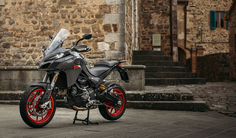 En la versión S, el viaje se convierte en 5 estrellas gracias a un paquete de referencia completo opcional para el segmento, que ve la adición de la suspensión electrónica Skyhook, Cruise Control, faro full-LED equipado con la función Ducati Cornering Lights que optimiza la iluminación de la calzada basada en la inclinación de la motocicleta, Ducati Quick Shift Up & Down, sistema de manos libres, un tablero de instrumentos TFT a color de 5 ”de alta resolución con interfaz intuitiva y controles de manillar retroiluminados.