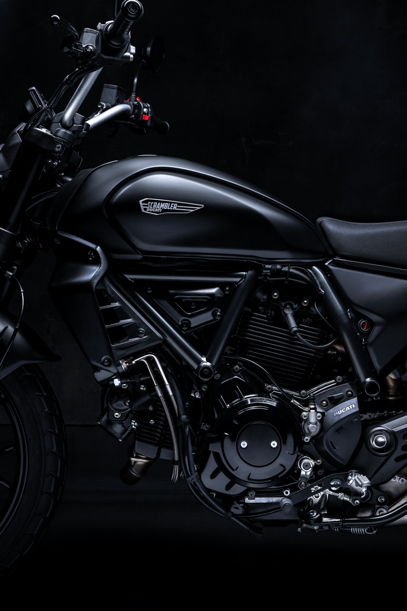 El diseño esencial y puro realza el encanto atemporal de las decoraciones Dark de las motos Borgo Panigale. Es una moto que te anima a expresar aún más tu personalidad, tus gustos y necesidades, a que juegues con las posibilidades de su decoración, que siempre han sido un pilar fundamental del mundo Ducati Scrambler. El icónico tanque en forma de lágrima, el elemento distintivo de Scrambler, en su decoración Total Black crea un juego de matices entre los diferentes materiales y realza otros detalles, como el guardabarros delantero y los transportadores. El logotipo Ducati Scrambler en el depósito Dark Stealth es más moderno y combina perfectamente con el dinamismo del negro mate. Los paneles laterales esenciales y el colín deportivo hacen que la línea Dark sea aún más ligera y elegante.