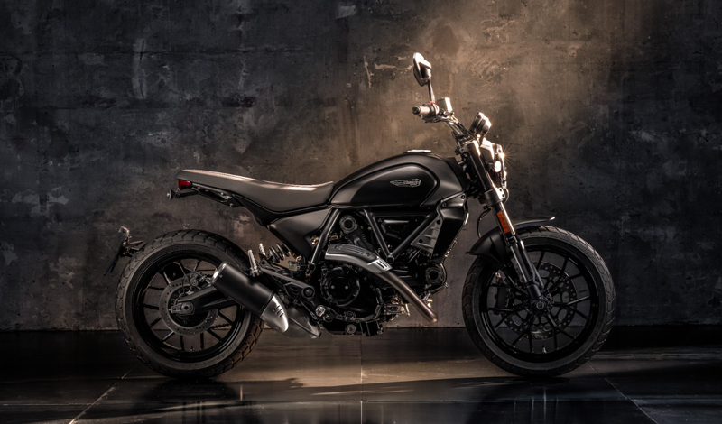 Scrambler Icon Dark La Icon Dark es el modelo que expresa la esencia más pura de la Ducati Scrambler. Esta moto elimina lo superfluo gracias a su estética en negro oscuro, combinando la elegancia minimalista de la segunda generación de Ducati Scrambler con el espíritu divertido, desenfadado y libre de la Tierra de la Alegría, de la que representa el modelo de entrada.