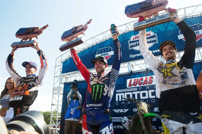 En la clase 450, Eli Tomac de Kawasaki logró una actuación dominante en la sexta ronda del campeonato, Jason Anderson finalizó en segunda posición y Marvin Musquin completó el podio en el tercer lugar.