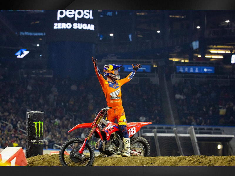 Eli Tomac de Monster Energy Star Racing Yamaha se llevó la victoria frente a 47,043 fanáticos en una carrera salvaje que se volverá a ver en los próximos años. En Ford Field, Tomac se convirtió en el primer piloto en el Campeonato Monster Energy AMA Supercross 2022 en ganar tres carreras seguidas; estiró su ventaja de puntos a 42 después de 10 rondas de la serie de 17 rondas. Malcolm Stewart de Rockstar Energy Husqvarna Factory Racing realizó una carrera inteligente para llevarse a casa un segundo puesto, igualando el mejor resultado de su carrera y de la temporada y empatando en el segundo lugar en los puntos. Justin Barcia, de Troy Lee Designs Red Bull GASGAS Factory Racing, terminó tercero después de liderar temprano. En la clase Eastern Regional 250SX, Jett Lawrence del equipo Honda HRC se llevó la victoria, la tercera de la temporada, y amplió su ventaja de puntos a ocho en solo cuatro rondas en la división.