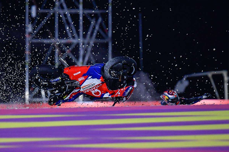 El triunfador de Qatar ha sido Enea Bastianini con la Desmosedici GP del equipo Gresini Racing. Segundo en el clasificatorio del sábado y cuarto en los primeros compases de la carrera, el piloto italiano se ha colocado en cabeza a falta de cinco vueltas para el final, cogiendo una distancia suficiente respecto al segundo para asegurarse su primera victoria en MotoGP. El segundo puesto se lo llevó Brad Binder de KTM, logrando un gran desempeño, la primera caída de la temporada fue de Marco Bezzecchi.