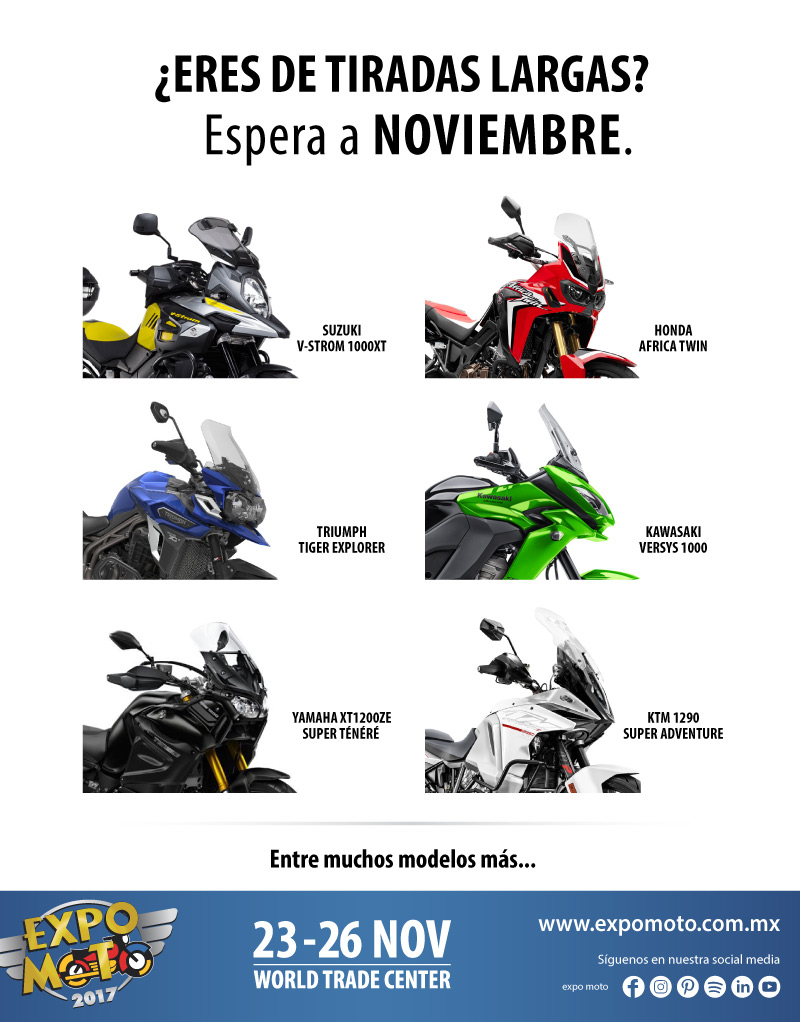 2016-05-28: Este correo electrónico y, en su caso, cualquier fichero anexo, contiene información exclusivamente dirigida a su destinatario. En caso de haber recibido este correo electrónico por error, se ruega notifíquese inmediatamente esta circunstancia a info@expomotonews.com Al mismo tiempo EXPO MOTO le recuerda que sus datos forman o formarán parte de un fichero registrado, propiedad de la EXPO MOTO. Usted tiene derecho de acceso, oposición, rectificación y cancelación a estos datos que deberá ejercer mediante escrito a la dirección anteriormente citada.Expo Moto es una marca registrada. Los logotipos de patrocinadores fueron proporcionados por la misma marca. Queda prohibido el uso de las imágenes difundidas en este correo. © 2013 EXPO MOTO Todos los derechos reservados.