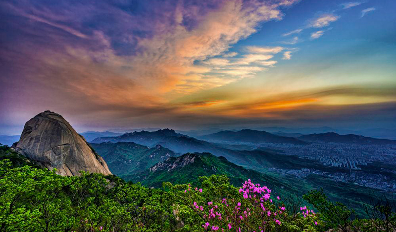 Toma la carretera local 1 en dirección al Parque Nacional de Bukhansan, un destino imprescindible para los motociclistas que buscan una combinación de rutas desafiantes y paisajes impresionantes. Este trayecto cubre aproximadamente 20 kilómetros, y te tomará alrededor de 45 minutos, dependiendo del tráfico. Pasarás a través de montañas boscosas y curvas cerradas, desde donde apreciarás vistas panorámicas de la ciudad. El camino, aunque corto, es intenso, y requiere destreza al manillar, especialmente en las secciones más empinadas. Una vez en el parque, haz una parada para explorar sus senderos y disfrutar de la tranquilidad que ofrece la naturaleza.
