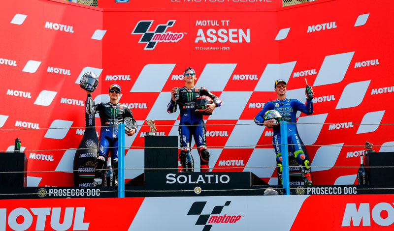 Fabio Quartararo, lanzó la táctica a la perfección en el Motul TT Assen para llegar a la cima, encabezando un 1-2 de Yamaha por delante de su compañero de equipo Maverick Viñales cuando las dos máquinas de marca Iwata volvieron a sacar el pin una vez más el domingo. El dúo también empuja a la fábrica más allá del hito de 750 podios, con Yamaha ahora contando con 751 con dos corredores en la tribuna de Assen. El actual campeón Joan Mir (Team Suzuki Ecstar) completó el podio, pasando del décimo lugar en la parrilla.