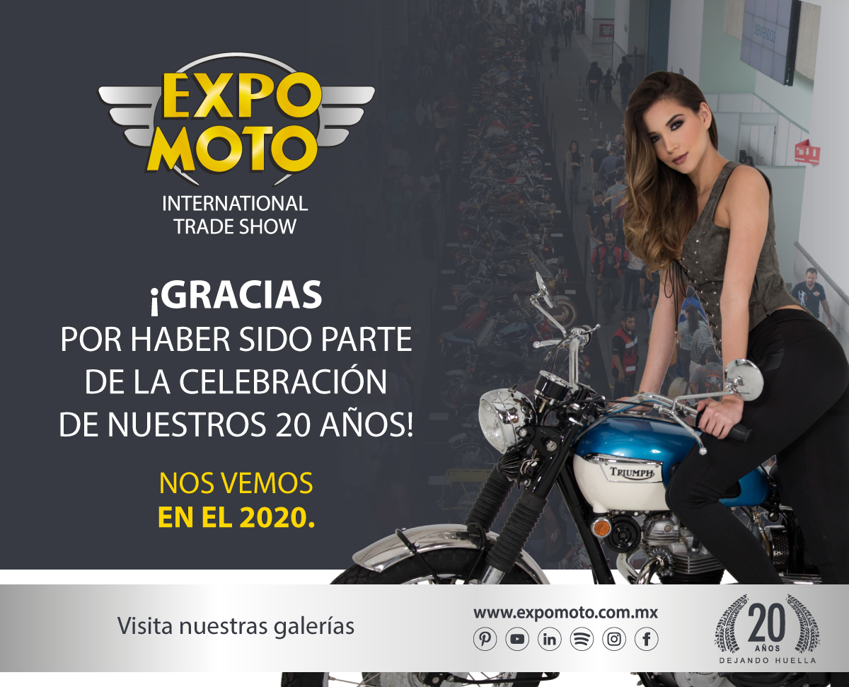 2016-05-28: Este correo electrónico y, en su caso, cualquier fichero anexo, contiene información exclusivamente dirigida a su destinatario. En caso de haber recibido este correo electrónico por error, se ruega notifíquese inmediatamente esta circunstancia a info@motociclo.com.mx Al mismo tiempo EXPO MOTO le recuerda que sus datos forman o formarán parte de un fichero registrado, propiedad de la EXPO MOTO. Usted tiene derecho de acceso, oposición, rectificación y cancelación a estos datos que deberá ejercer mediante escrito a la dirección anteriormente citada.Expo Moto es una marca registrada. Los logotipos de patrocinadores fueron proporcionados por la misma marca. Queda prohibido el uso de las imágenes difundidas en este correo. © 2013 EXPO MOTO Todos los derechos reservados.