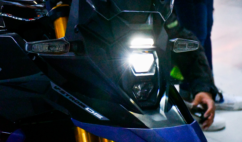 El par de faros LED hexagonales distintivos apilados verticalmente en la v-strom800de emplea una fuente de luz LED monofoco brillante que ayuda a tener una mejor visibilidad del camino. En términos de diseño, la orientación vertical del conjunto de faro delgado y compacto coronado por un LED la luz de posición crea una apariencia nítida con un carácter único. Sus luces de posición LED compactas, intermitentes LED y luz trasera LED garantizan una mejor visibilidad. La nueva V-Strom 800DE cuenta con el nuevo motor bicilíndrico paralelo de 776 cm3 DOHC, de 4 válvulas por cilindro, un nuevo y robusto bastidor, mayor recorrido de la suspensión y una distancia al suelo superior respecto a todos los modelos v-strom hasta la fecha. Recorre cómodamente y con confianza las zonas “off-road” y caminos de todo tipo.