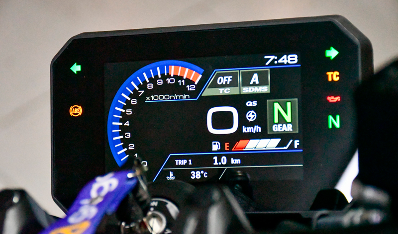 Vive la mejor experiencia de conducción. El panel de instrumentos multifunción TFT LCD a color de 5 pulgadas personalizado de la GSX-8S para una mejor visibilidad de información. No solo te mantiene al tanto de todos los sistemas y configuraciones de la moto, sino que también proporciona notificaciones sobre el estado operativo en tiempo real. El aspecto es de alta calidad y se presenta en Modo Día y Modo Noche para mejor visibilidad. Concéntrate en el camino y maximiza la facilidad y eficiencia de operación con los Controles Intuitivos en el Manillar. Simplemente opera los interruptores MODE y UP/DOWN en el mando izquierdo y experimenta una gran sensación de conducción.