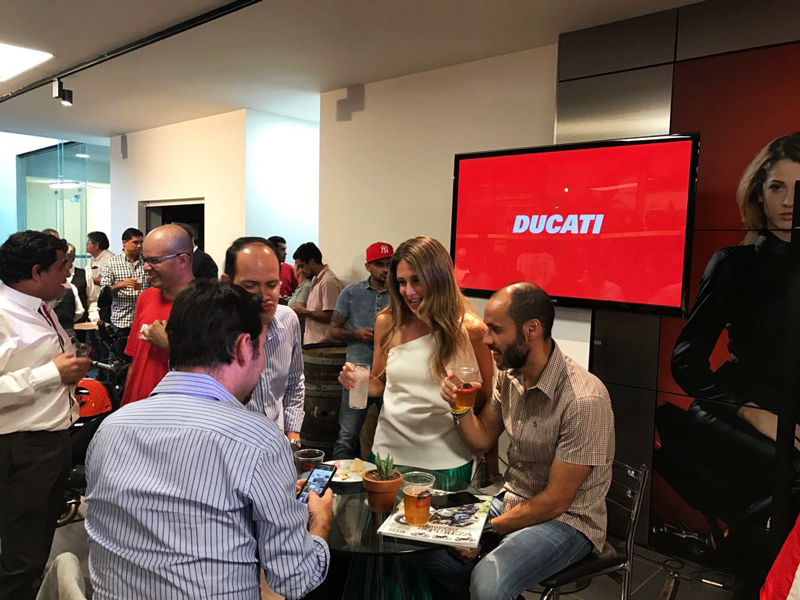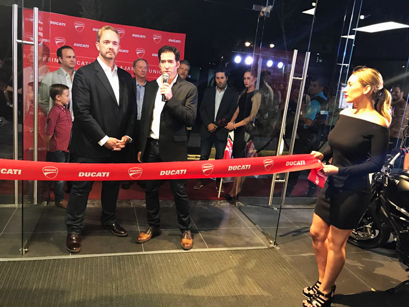 El Director Ejecutivo de Ducati Norteamérica, Jason Chinnock, ofreció unas palabras manifestando su entusiasmo por el mercado mexicano, después de la apertura de las sucursales de Puebla y Querétaro. Erwin Richter, impulsor de Ducati y Director Comercial en México, dirigió al gran número de asistentes para dar paso al corte del listón, acto en el cual participaron también los señores Francisco Bejar, Ángel Gúzman, socios y directivos de las flamantes instalaciones. En el marco de un gran ambiente agradable, muy bien atendidos con excelentes bebidas y ambigús, departimos con personajes de los medios de comunicación y con celebridades, intercambiando opiniones sobre las espectaculares unidades que se encontraban en el piso de exhibición.