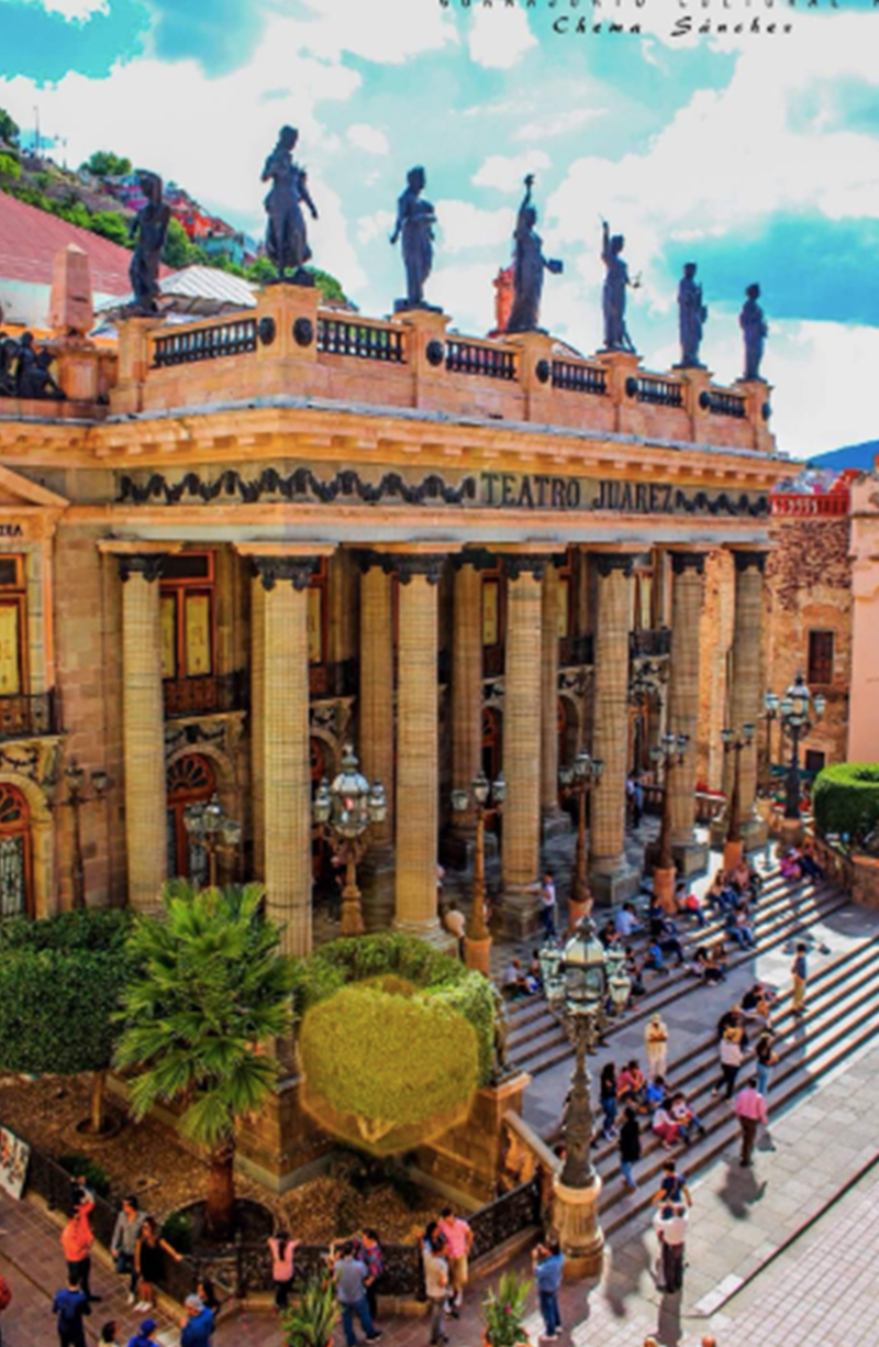 El Teatro Juárez es considerado uno de los más hermosos teatros de México, construido entre 1872 y 1903, período en que la edificación sufrió frecuentes interrupciones. Fue inaugurado el 27 de octubre de 1903 por el Gral. Porfirio Díaz. Su pórtico es de estilo dórico romano, donde ocho columnas sostienen a otras tantas musas. Entre sus atractivos cuenta con un salón fumador (foyer) de estilo art nouveau.