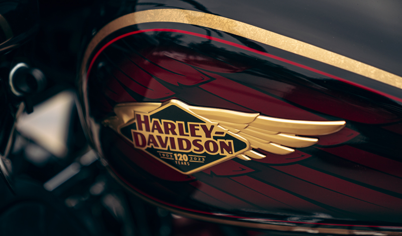 - Nuevos modelos 120th AnniversaryLa CVOTM Road Glide® Limited Anniversary es una motocicleta de edición limitada super-premium que celebra 120 años de arte motociclista, con uno de los mejores esquemas de pintura jamás ofrecidos por la marca. La pintura Heirloom Red se aplica sobre una capa base de Anniversary Black, con contornos en pinstripe rojo brillante y pintura dorada aplicada a mano. Sutiles detalles representan la cabeza y las alas de un águila en vuelo. El medallón dorado del depósito es una versión Art-Deco del águila – un elemento icónico de Harley-Davidson. Entre los detalles adicionales se incluyen acabados dorado y rojo en los lujosos asientos y en el powertrain, además del grabado con láser del número de serie de la edición limitada.