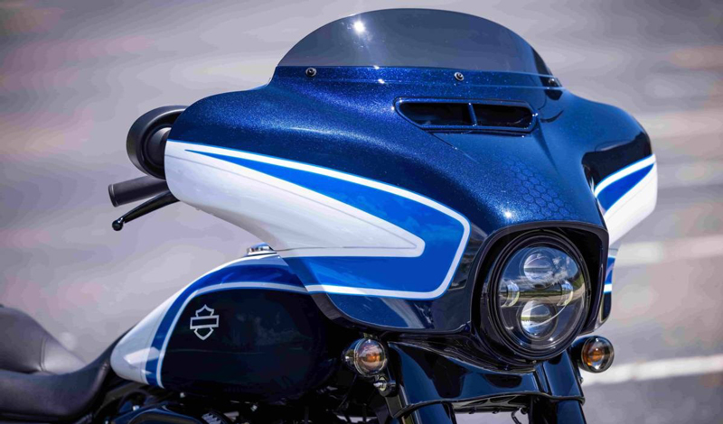 La Harley-Davidson Street Glide Special Edición Limitada, sólo estará disponible en un solo color azul intenso metálico con trazos azules brillantes sobre una base blanca nacarada.